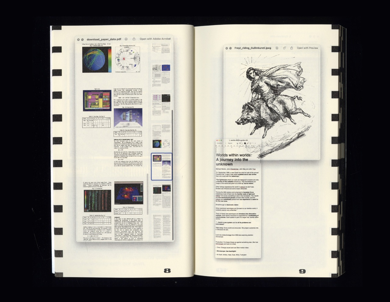 Things look and operate in certain ways and we can easily overlook that other explanations, interpretations or experiences of the same phenomena exist simultaneously with our own. One's own sense of reality often carries the potential of tunnel vision and once you think you’re closing in on what is real, you’re only further isolating what you believe to be the truth from everything else. My counter thesis to conventional truth-seeking is to look outside what is real, at the unreal or the unfathomable. Filtering out reality has the potential to become an antidote to various types of blindness to the world. Sieving implies removal, but it is also entails revealing, investigating or analyzing – like looking under a rock that you’ve never before lifted. One world becomes two new worlds. And upon return what before seemed real may now appear alien and stripped of the meaning it used to have, but with previously unseen prospects of significance or understanding. Filtering out reality should perhaps be understood more as filtering in reality, since what passes through a sieve is a condensed selection of the original input.